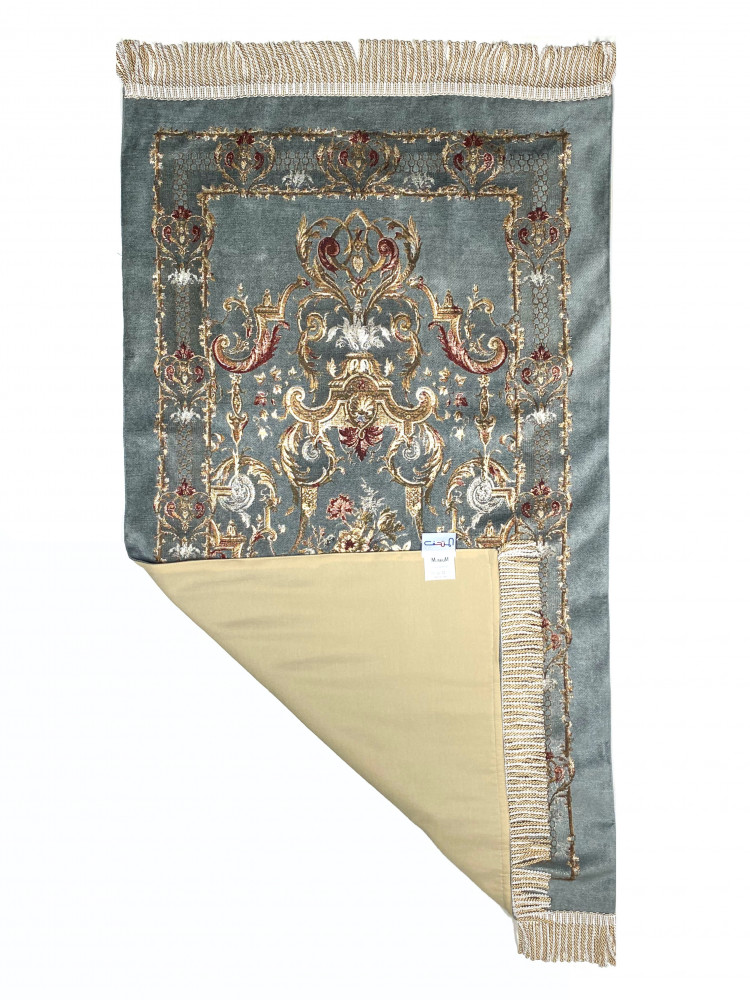 سجادة صلاة شينيل ورود بخيوط مذهبة مبطنة بعلبة