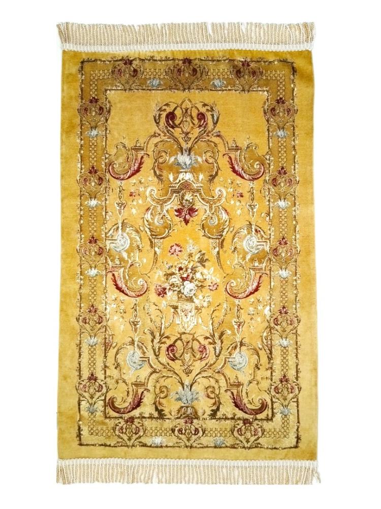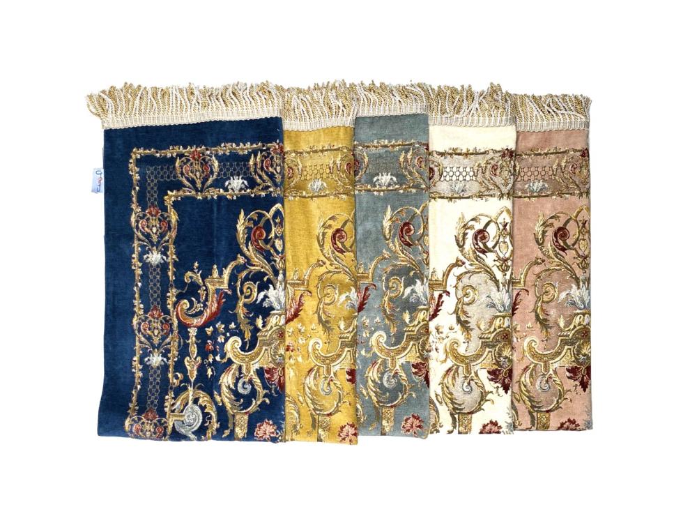 سجادة صلاة شينيل ورود بخيوط مذهبة مبطنة بعلبة