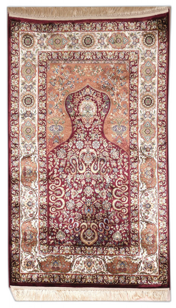 سجادة صلاة حرير لون بوردو بيج 70x110cm