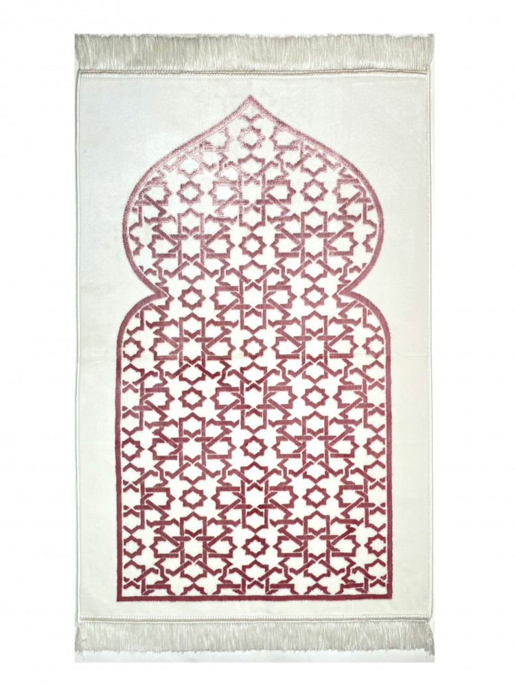 سجادة صلاة مخمل لون ابيض /زهري