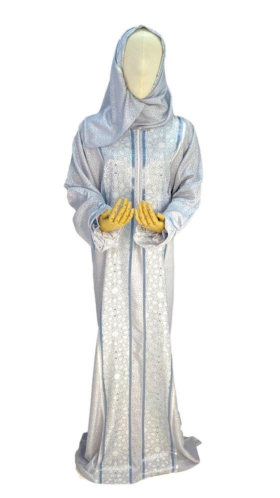 - التصميم الفريد: يتميز الثوب بلمسات دقيقة من الجاكار تمنحك إطلالة أنيقة أثناء الصلاة، مما يعزز الشعور بالسكينة والروحانية.